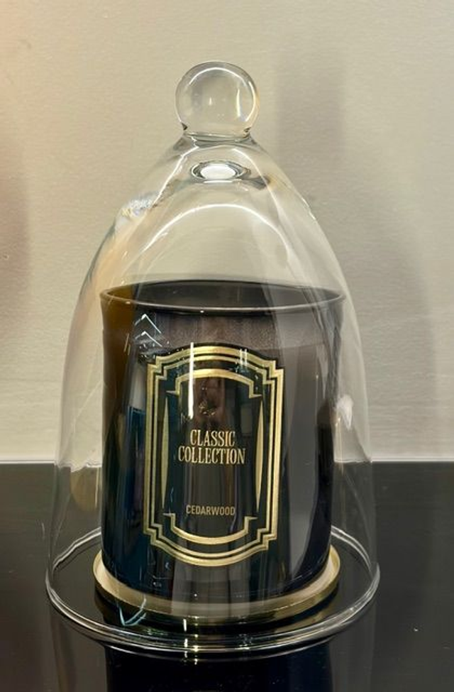CAMPANA DE CRISTAL PARA TAPAR VELAS. ES A LA VEZ DECORATIVA Y FUNCIONAL YA QUE AYUDA A EVITAR QUE LA VELA COJA POLVO CUANDO NO SE ESTA USANDO A LA VEZ QUE PRESERVA SU AROMA. MEDIDAS 11 DIAMETRO X 18 ALTURA