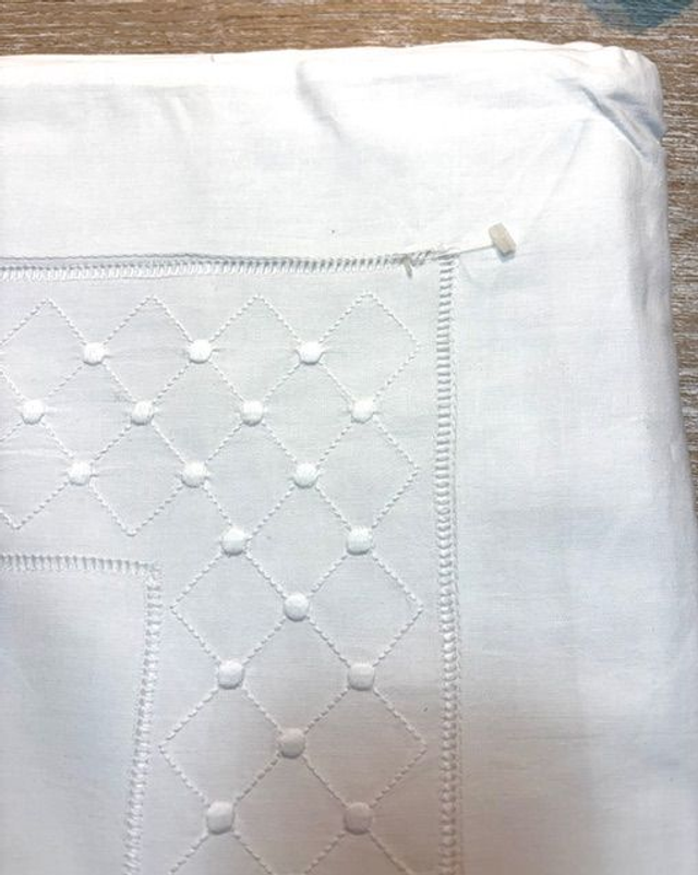 JUEGO DE SABANAS BODOQUES PARA CAMA DE 90X2. CONSTA DE 1 FUNDA DE ALMOHADA DE 45X110 Y UNA ENCIMERA CON PUNTILLA BLANCA. ALGODON 100% EN BLANCO.