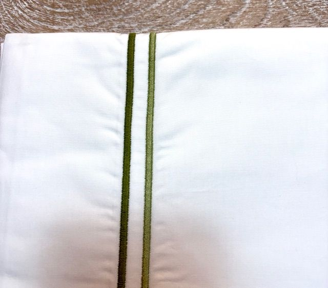 JUEGO DE SABANAS BLANCAS ALGODON 100% PERCAL 200 HILOS PARA CAMA DE 90X190 CON DOS FESTONES VERDES EN DEGRADE EN SABANA ENCIMERA (160X290) Y FUNDA DE ALMOHADA DE 45X90. BAJERA AJUSTABLE BLANCA DE 90X190