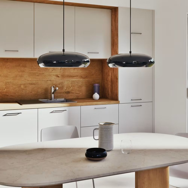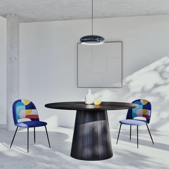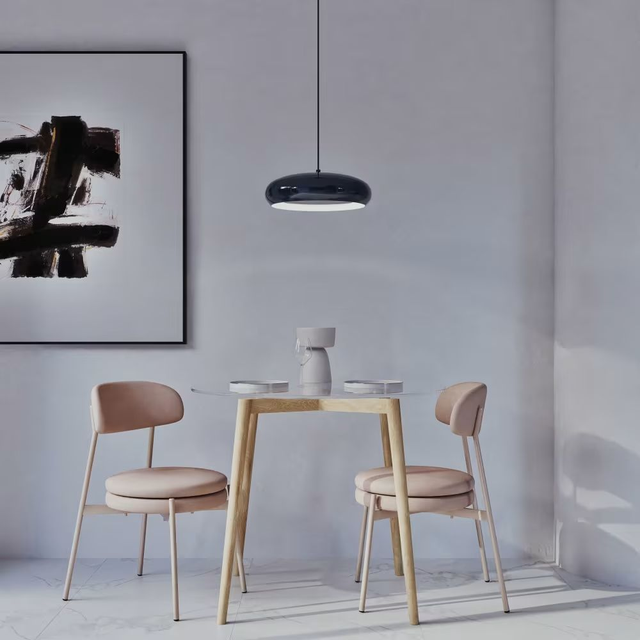 Está hecha de metal de alta calidad y viene con un acabado azul mate que le da un aire moderno y sofisticado. Su diseño es sencillo pero elegante, y la luz que emite es suave y cálida