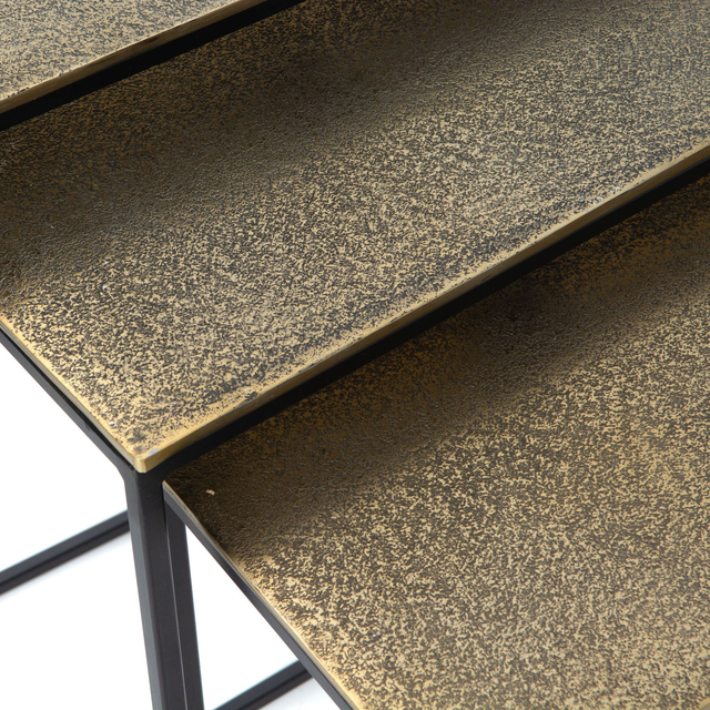 SET 3 CONSOLAS DE HIERRO MEDIDAS 53X29X66/47X26X61/44X24X56 PATAS LACADAS EN NEGRO, TABLERO COLOR ORO ENVEJECIDO