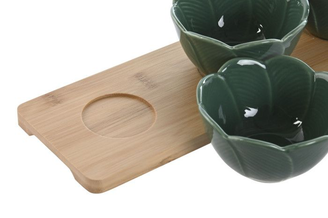 Set aperitivo porcelana disponible en verde oscuro o en verde claro. medidas 32x10x7