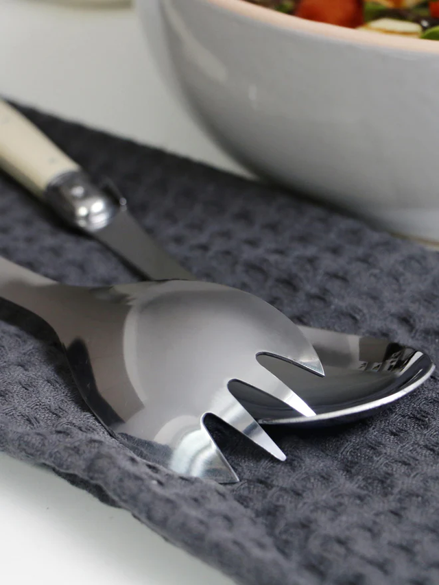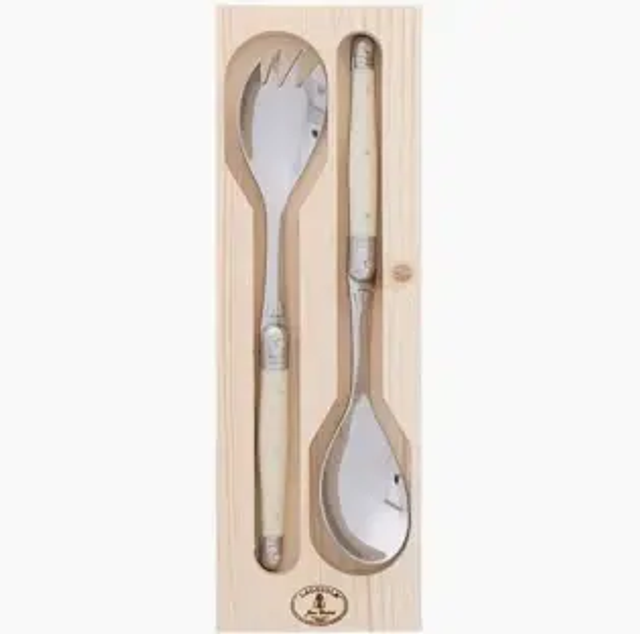 SET 2 CUBIERTOS DE SERVIR CUCHARA Y TENEDOR EN ACERO INOXIDABLE LAGUIOLE DUBOST COLAS. COLOR MARFIL. APTO LAVAVAJILLAS. FABRICADO EN FRANCIA. LARGO 25 CMS